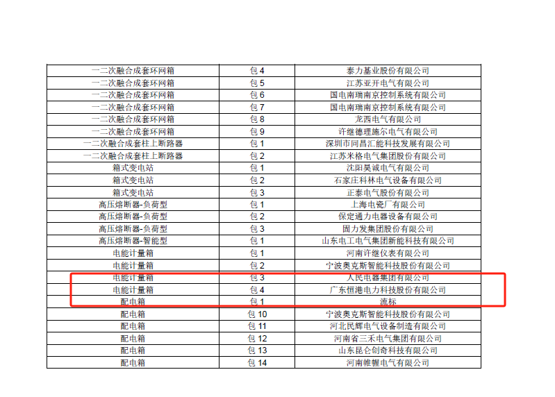 2024年11月29日 國網(wǎng)四川省電力公司傳來捷報(bào),廣東恒港電力科技股份有限公司中標(biāo)“國網(wǎng)四川省電力公司 2024 年第二次配網(wǎng)物資協(xié)議庫存招標(biāo)采購項(xiàng)目”項(xiàng)目電能計(jì)量箱分標(biāo)。恒港公司一直持著“客戶至上、質(zhì)量第一”的經(jīng)營理念,為客戶提供更加優(yōu)質(zhì)的產(chǎn)品和服務(wù)。讓我們繼續(xù)攜手共進(jìn),再奪佳績?。?!